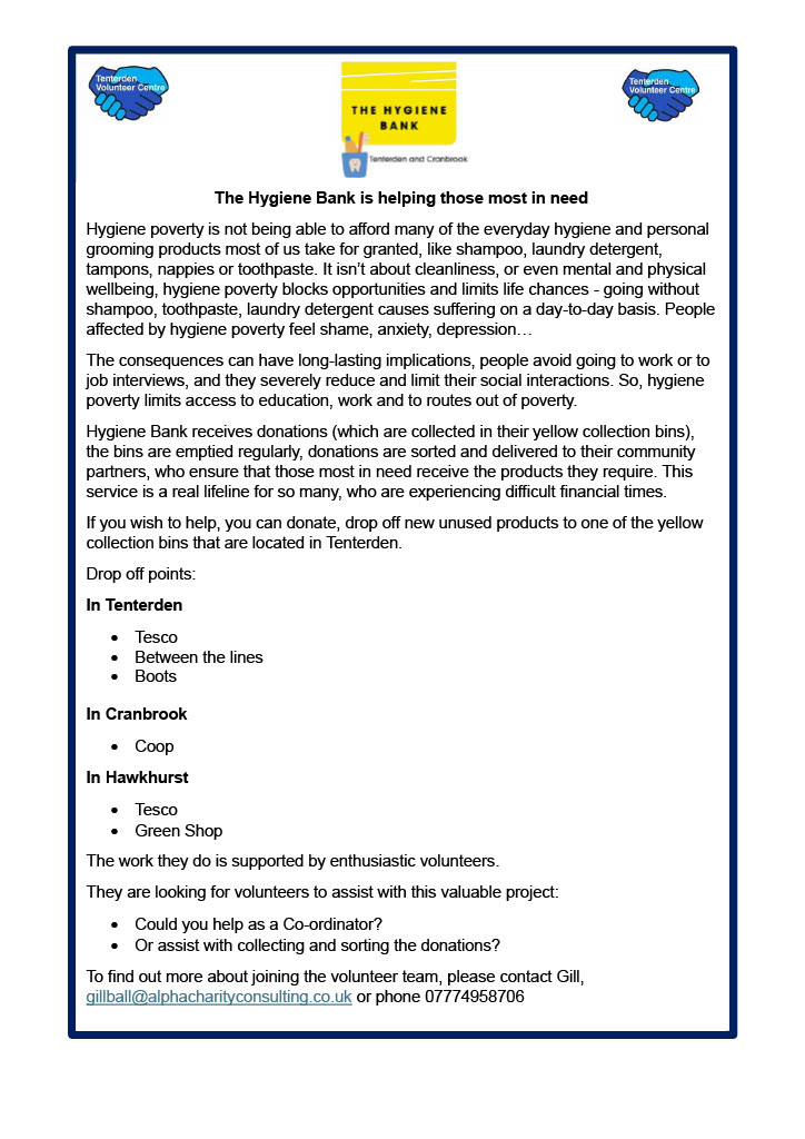 Our vision is that the people of Tenterden are inspired and supported to volunteer, enhancing both their lives and the lives of others.